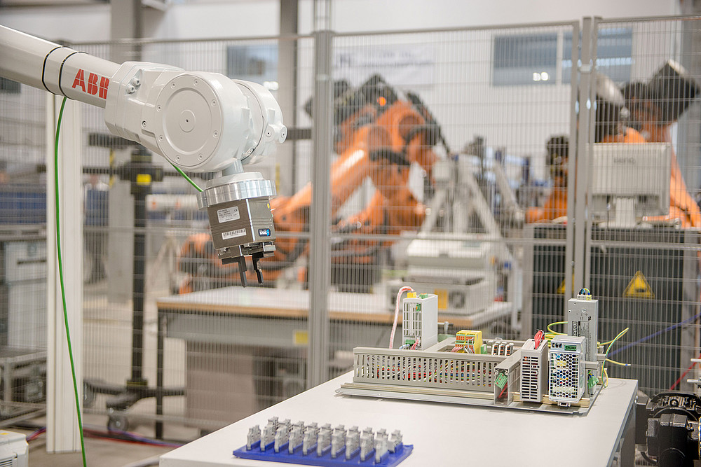 The gap between science and economy sometimes seems large. Not so at the Ruhr Innovation Lab! Founded in 2008, the learning and research factory at Ruhr University Bochum replicates the entire production process of a commercial enterprise, from technology and organization to human resources. Modern laboratories, machine tools, industrial robots, and measurement technology are not only used for research and teaching, but also for various qualification programs. Specialists and managers can receive further training here in areas such as lean management, smart factories, and agile working methods.